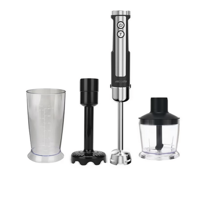 Погружной блендер ARDESTO HBG-1000BCHP черно-серебристого цвета пригодится для быстрого приготовления коктейлей, смузи, соков и всевозможных соусов. Оснащен двигателем мощностью 1000 Вт с низким уровнем шума, двумя режимами работы (обычный и турбо) и пятью скоростями. К тому же доступны три функции приготовления продуктов: смешивание, измельчение, взбивание. Устройство имеет тонкую эргономичную рукоятку со специальным противоскользящим покрытием и подсветкой кнопок управления. Лезвие изготовлено из нержавеющей стали, на ножке предусмотрена защита от разбрызгивания. В комплекте имеется мерная чаша объемом 600 мл, измельчитель (500 мл) и насадка для пюре. Длина кабеля питания составляет 1,3м.