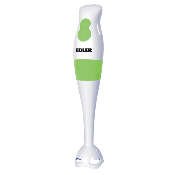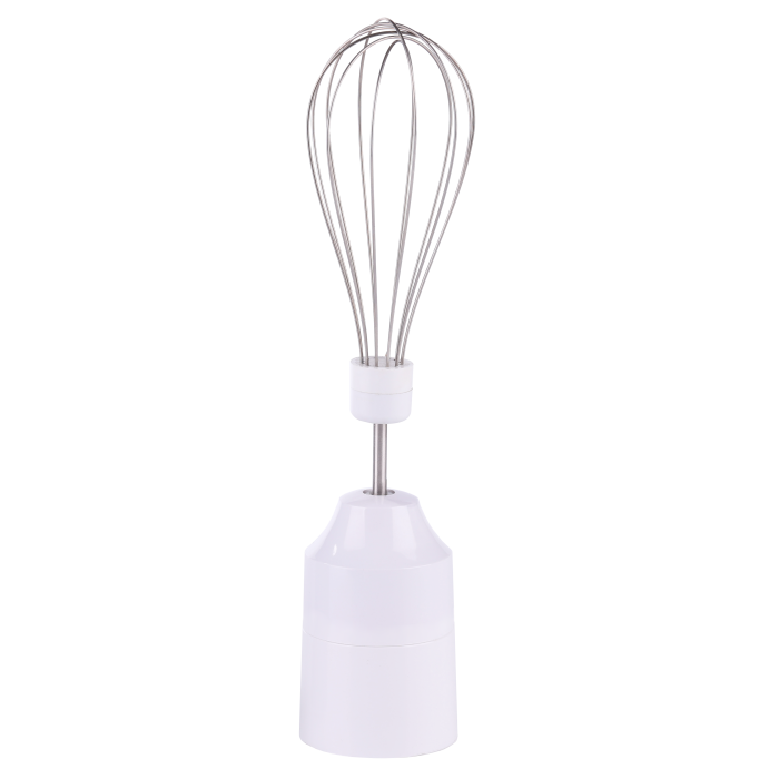 Занурювальний блендер, потужність 250 Вт, 2 швидкості, занурювальна частина пластикова, ножі з нерж. сталі, подрібнювач - 0.5 л, мірна склянка - 0.6 л, віночок для збивання, корпус із пластику.