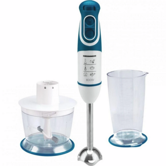 Ручной блендер Heinner Charm HB-600, 600 Вт, многофункциональный: с измельчителем, венчиком и чашкой для смешивания, 5 скоростей + Turbo, съемный стальной вал для смешивания, лезвия из нержавеющей стали.