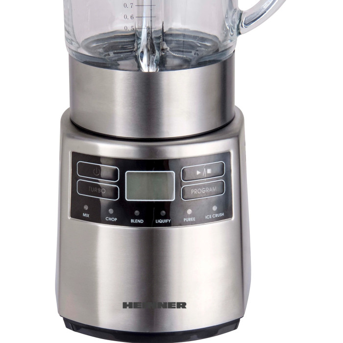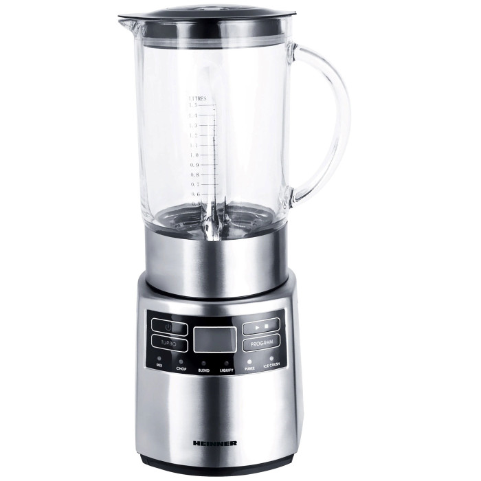 Стационарный блендер, мощность 1000 Вт, стеклянная чаша - 1.5 л, 5 скоростей, импульсный режим, колка льда, 6 ножей из нерж. стали, прорезиненные ножки, корпус из нержавеющей стали