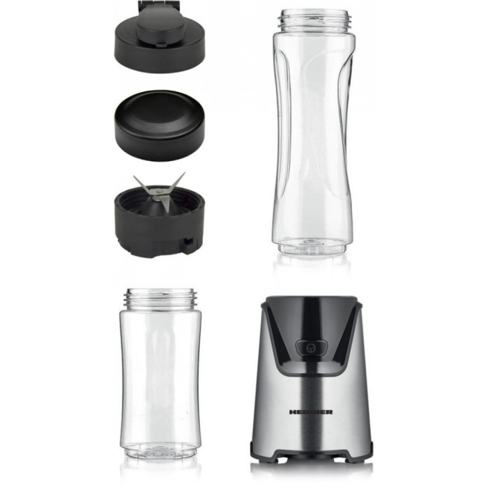 У комплект входить основний блок блендера, дві тританові пляшечки, одна з яких має кришку для вживання на ходу, друга – для зберігання свіжості, а також 4-лопасний ніж із нержавіючої сталі. Тританова чаша легко миється в посудомийній машині, забезпечуючи зручність у догляді. Завдяки спортивним пляшечкам блендер призначений для приготування смузі та сорбетів, що робить його ідеальним вибором для активного способу життя.
