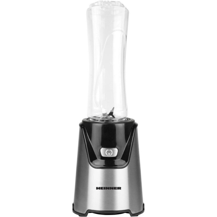 Модель HEINNER HSB-T400SS має компактний дизайн з габаритами 37.3 x 13 x 13 см та вагою 1.2 кг, що дозволяє легко розміщувати прилад на кухні. Управління здійснюється механічною кнопкою ON/OFF, а для додаткової зручності передбачені ніжки, які забезпечують стабільність під час роботи. Блендер оснащений захистом від увімкнення без чаші, що додає безпеки у використанні.