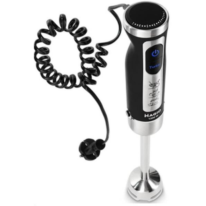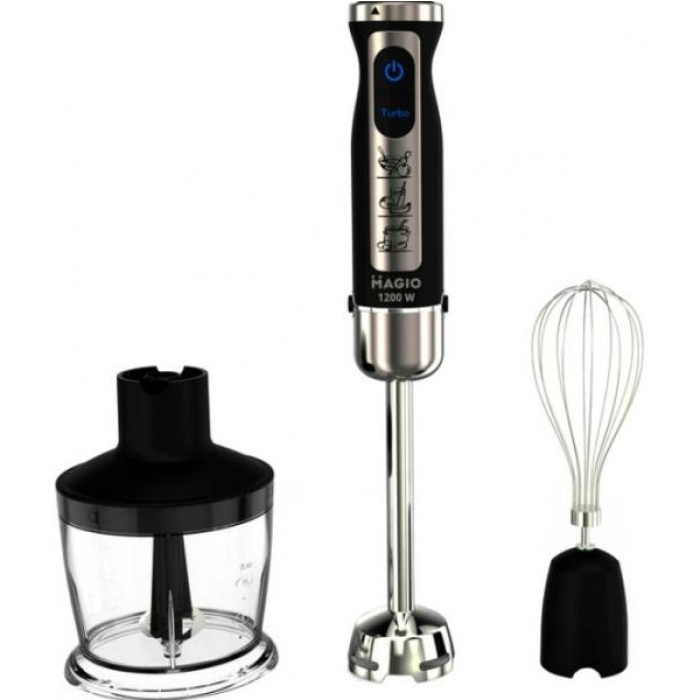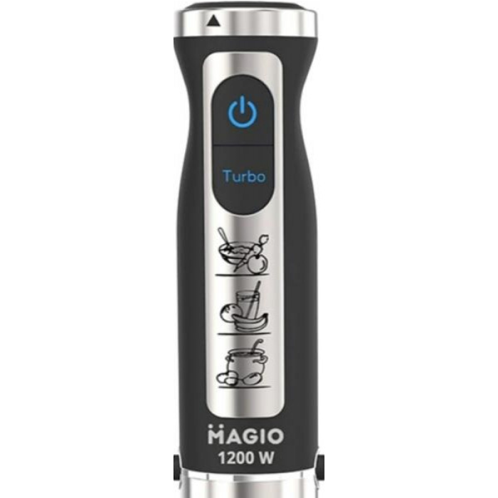 Блендерный набор MG-644 позволит вам разнообразить ваше меню и приготовить новый кулинарный шедевр. Мощность блендера составляет 1200 Вт, что обеспечивает бесшумную эффективную работу в течение длительного времени. Погружная часть и нож выполнены из нержавеющей стали — залог устойчивости к износу и долговечности. Эргономическая рукоятка с приятным покрытием SOFT TOUCH. Блендер может работать на 19 плавно переключающихся скоростях. Переключатель находится на рукоятке прибора, что весьма удобно. В комплект входит венчик для взбивания и мини-измельчитель объёмом 500 мл. Эти свойства в сочетании с компактным дизайном делают блендер незаменимым помощником на вашей кухне.