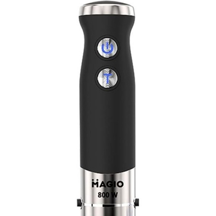 Блендерный набор MG-647 позволит вам разнообразить ваше меню и приготовить новый кулинарный шедевр. Мощность блендера составляет 800 Вт, что обеспечивает бесшумную эффективную работу в течение длительного времени. Погружная часть выполнена из нержавеющей стали, а нож с титановым покрытием — залог устойчивости к износу и долговечности. Эргономическая рукоятка с приятным покрытием SOFT TOUCH.