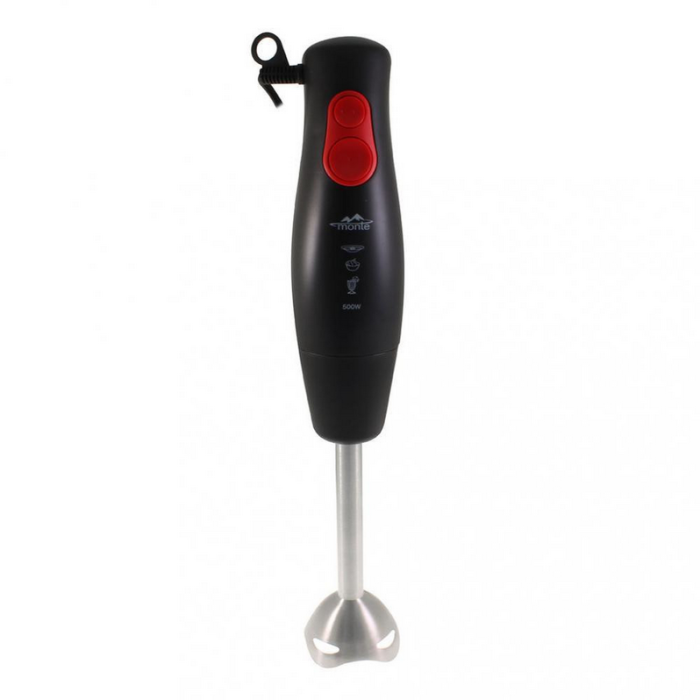 Погружной блендер Monte MT-1901 работает от питания от электросети стандарта 220В. Во время использования прибор необходимо держать рукой, а, учитывая, что габариты небольшие и мощность 500 Вт, все компоненты смешиваются и пюрируются за считанные минуты, и весь процесс превращается в увлекательное мероприятие.