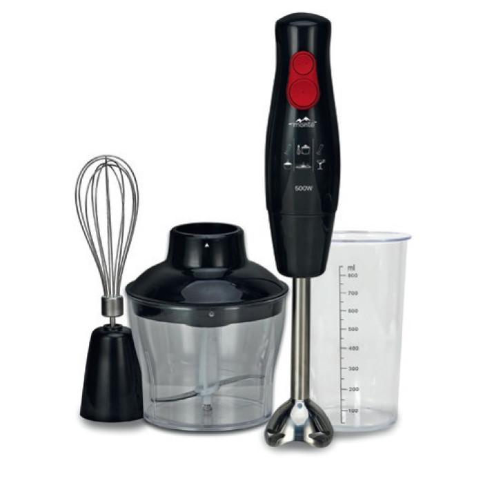 Погружной блендер Monte MT-1902 работает от питания от электросети стандарта 220В. Во время использования прибор необходимо держать рукой, а, учитывая, что габариты небольшие и мощность 500 Вт, все компоненты смешиваются и пюрируются за считанные минуты, и весь процесс превращается в увлекательное мероприятие.