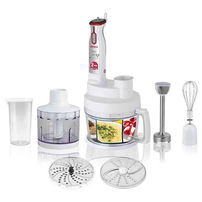 Потужний і надійний блендер Saturn ST-FP0053 ніколи не буде зайвим на кухні, адже такий простий і зручний в експлуатації прилад є багатофункціональним помічником, який прискорить і спростить процес приготування їжі. Saturn ST-FP0053 має зрозумілу і просту панель управління, вдало доповнену LED підсвічуванням і набором аксесуарів, включаючи гострий ніж, віночок, терки, чашу, об'ємом в 1750 мл, і 600 мл мірну склянку. У ньому встановлено надійний мотор, потужністю в 800 Вт, і передбачається можливість вибору з двох швидкісних режимів. Чи не підведуть матеріали, використовувані для виготовлення Saturn ST-FP0053, всі вони розраховані на довгий термін служби і активну експлуатацію, не викликаючи при цьому складнощів у догляді.