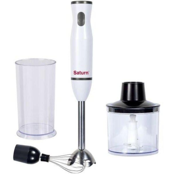 Відмінним помічником на кухні є блендер Saturn ST-FP9099. Пристрій потужністю 300 Вт має один швидкісний режим. Представлений блендер характеризує себе в роботі як зручний, практичний та багатофункціональний пристрій. Здійснюється все це завдяки розробленому ергономічному дизайну, вбудованим функціям подрібнення, змішування, збивання та дроблення. Занурювальна частина та ножі блендера виготовлені з високоміцної нержавіючої сталі. У комплект також входять: мірна склянка на 600 мл, міні-подрібнювач ємністю 500 мл та віночок.