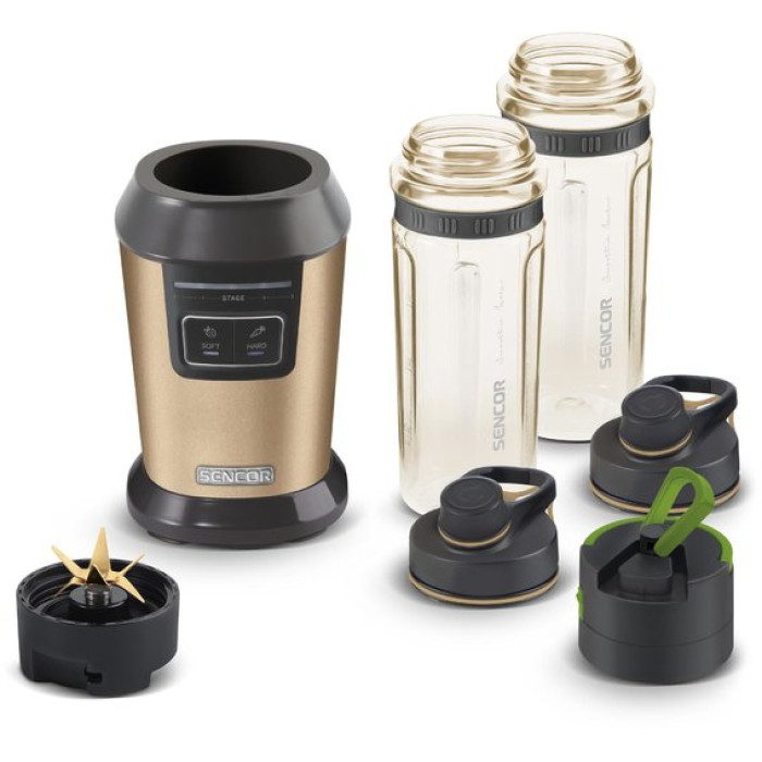 Унікальна пляшка для спорту об'ємом 0,6л підходить для перенесення на тренуванні. Спеціальна вакуумна кришка дозволяє зберегти максимальний вміст поживних речовин та свіжість смаку. Пляшки виготовлені з міцного матеріалу TRITAN без вмісту BPA (PCTG). Імпульсний вимикач для ефективного змішування Шість високоякісних знімних ножів із нержавіючої сталі з покриттям із титану