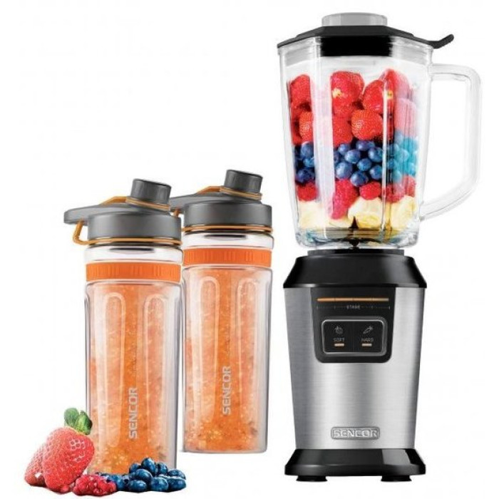 З невеликим, але потужним блендером Sencor SBL 7550SS ви зможете швидко приготувати свої улюблені фітнес-коктейлі та смузі. Два режими потужності дозволяють готувати суміші з різних овочів та фруктів. Завдяки спортивній пляшці з вакуумною кришкою ви зможете брати свіжі напої із собою на тренування у спортзал або на пробіжку до парку. Складно почуватися комфортно та безпечно зі скляною пляшкою на пробіжці. Саме тому ємність для сумішей, що йде в комплекті з Sencor SBL 7550SS, виготовлена із міцного, легкого та екологічного матеріалу – тритану. Прозора як скло пляшка абсолютно безпечна для контакту з харчовими продуктами, не впливає на смак напоїв і відрізняється високою міцністю. Вакуумна кришка не допускає протікання і має зручне вушко для перенесення. Натисніть на кнопку на корпусі блендера, і вже за мить ви зможете насолоджуватися свіжоприготовленим фрешем. Блендер оснащений двигуном потужністю 800 Вт зі збільшеною частотою обертання, який дозволяє отримати однорідну суміш із будь-яких овочів, ягід та фруктів і навіть подрібнити горіхи або лід.