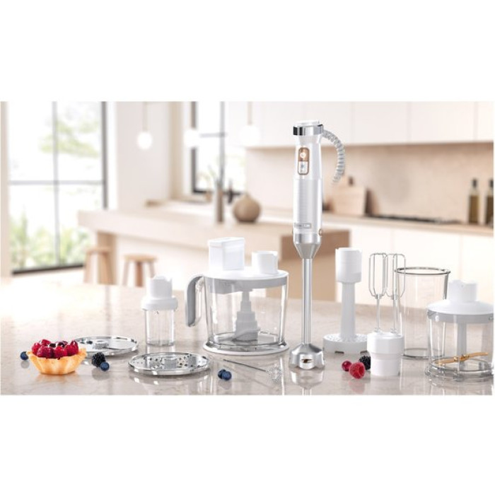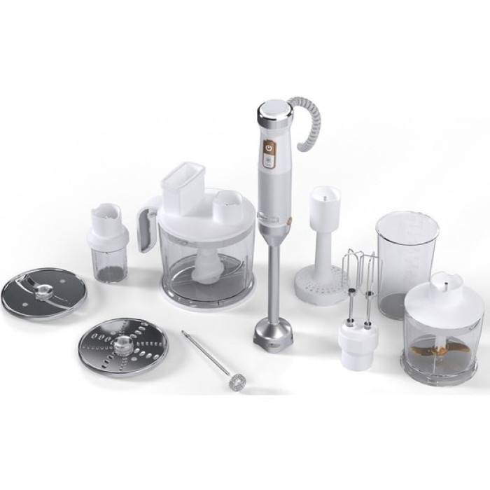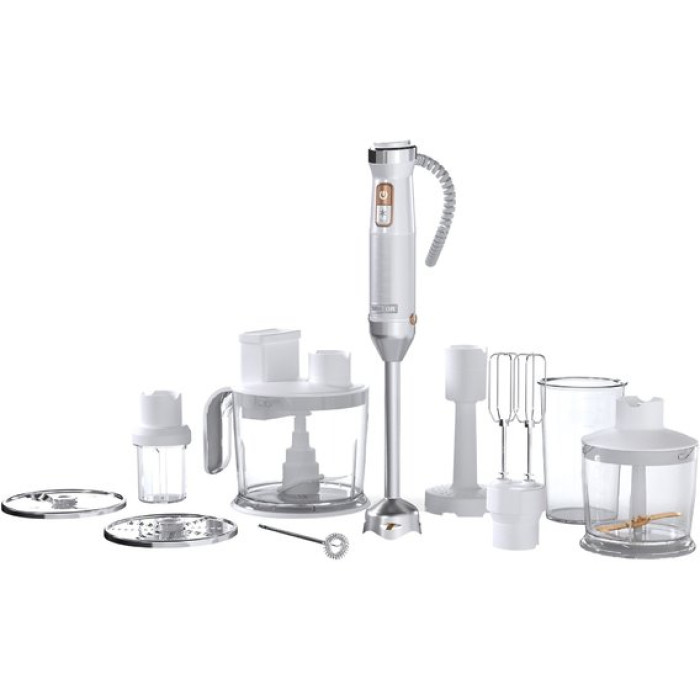 Ручний блендер SHB 6551WH – це універсальний пристрій, що забезпечує неперевершену продуктивність на кухні.Цей інноваційний блендер потужністю 1500 Вт має технологію Titanium QuadBlade, що гарантує ідеальні результати змішування.Його ніжка для змішування з нержавіючої сталі довжиною 20 см дозволяє легко та ефективно обробляти інгредієнти різними способами.Завдяки плавному регулюванню швидкості та ергономічній ручці користуватися блендером стає надзвичайно комфортно.Варто відзначити, що ніж із нержавіючої сталі гарантує довговічність і точність при змішуванні навіть найтвердіших інгредієнтів.Крім того, аксесуари також виготовлені із нержавіючої сталі, що робить їх стійкими до високих температур.Цей блендер 10 в 1 не тільки універсальний, а й довговічний, що підтверджується 10-річною гарантією на двигун.Завдяки йому ви легко впораєтеся як з повсякденними, так і складнішими кулінарними завданнями.