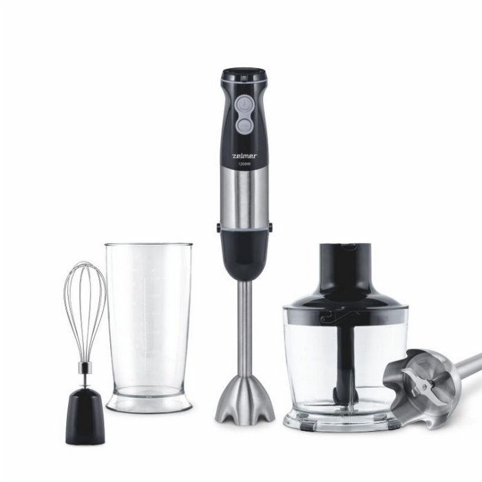 С помощью блендера Zelmer ZHB4571 вы сможете быстро измельчать и взбивать любые продукты. Для этого он оборудован 1200 Вт встроенной мощности, которые легко справляются с измельчением твердых орехов или шоколада. Более того, прочные лезвия остаются острыми даже после долгих лет эксплуатации и не требуют особого ухода. Разработчики оборудовали блендер 20 скоростными режимами, поэтому вы сможете подобрать необходимую интенсивность работы для выполнения любой задачи — будь то взбивание сливок или измельчение овощей. Отдельного внимания заслуживает специальный турборежим, во время которого блендер будет работать на максимально возможных оборотах. Благодаря удобному управлению выбрать нужную скорость можно легким движением руки. В комплекте с блендером идет мини-измельчитель емкостью 450 мл. Эго можно использовать для рубки орехов, овощей, шоколада и прочих продуктов. А, чтобы узнать точное количество ингредиентов, вы можете воспользоваться специальным мерным стаканом на 0,8 литра.
