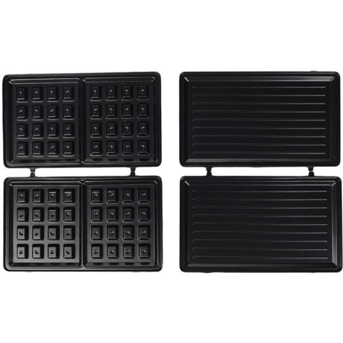 Завдяки оптимальній потужності пристрій прогріває бутерброди з великою кількістю начинки за кілька хвилин. Три знімні насадки дозволяють поласувати чотирма сендвічами, двома товстими вафлями, овочами та м'ясом на грилі, завдяки оптимальній кількості відділень панелей. Модель чудово підійде як для 1-2 чоловік, так і для великої родини! Антипригарне покриття значно спрощує процес приготування та полегшує догляд за технікою.