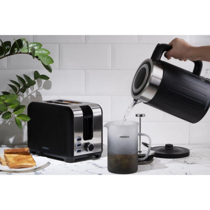 Електрочайник Ardesto EKL-F18B створений для любителів класики: його корпус виконаний в чорному кольорі, що надає загальному дизайну стильні нотки. Конструкція представленого електричного чайника базується на зручній поворотній підставці, здатній подавати електрику до нагрівального елементу. Від неї підведено мережевий кабель, тому сам резервуар з водою не має проводів і може обертатися на всі боки безперешкодно. Запобіжний механізм у вигляді Strix-контролера здатний забезпечити своєчасне відключення пристрою, захистивши його від перегріву. Чайник відключиться, якщо всередині не буде води, якщо вона досягла кипіння, якщо можливий загальний перегрів.