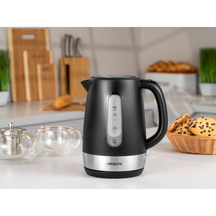 Електрочайник Ardesto EKL-F19B створений для любителів класики: його корпус виконаний у чорному кольорі, що надає загальному дизайну стильних ноток. Конструкція представленого електричного чайника базується на зручній поворотній підставці, яка здатна подавати електрику в нагрівальний елемент. Від неї підведений мережевий кабель, тому сам резервуар з водою немає проводів і може обертатися на всі боки безперешкодно. Запобіжний механізм як Strix-контролера здатний забезпечити своєчасне відключення пристрою, захистивши його від перегріву. Чайник відключиться, якщо всередині не буде води, якщо вона досягла кипіння, якщо можливий загальний перегрів.