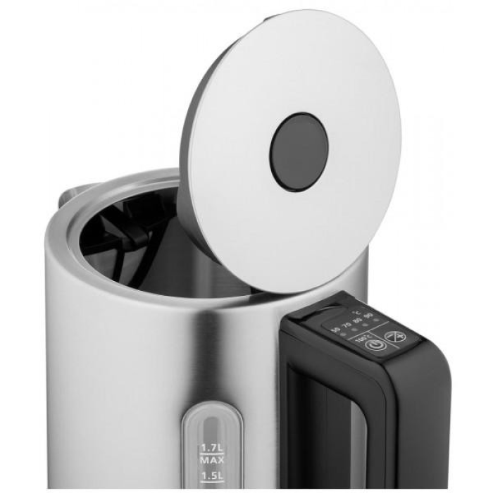 По технічній частині електрочайник Ardesto EKL-FD700SS відноситься до моделей з розширеною функціональністю. Ви можете задавати температурний режим роботи, щоб ваш напій був приготовлений якнайкраще. Передбачені режими температури 50, 70, 80, 90 і 100 градусів. Як бачите, вибір досить широкий і ви точно отримаєте воду потрібної температури. Потужність приладу складає 2200 Вт. Тому для отримання 1.7 літра окропу вам потрібно буде почекати всього кілька хвилин. Електрочайник має великий прихований нагрівальний елемент, який швидко нагріває воду. Для запобігання поломці електрочайник відключається при перегріві, він також не включається за відсутності води.