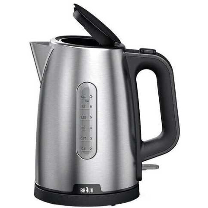 Тип – електрочайник; Об'єм (л): 1.7; Потужність (Вт): 2200; Нагрівальний елемент: прихований; Покриття нагрівача: нержавіюча сталь; Індикатор рівня води; Відкривання кришки кнопкою; Подача води: Матеріал: сталь