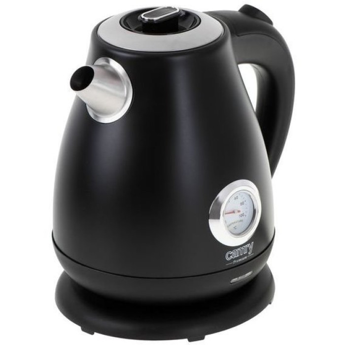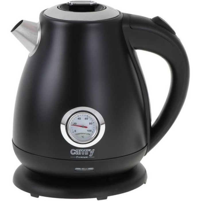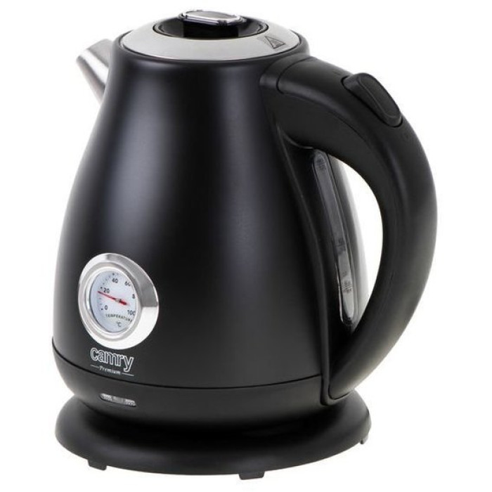 Camry CR 1344 класичний 1,7-літровий електричний чайник з аналоговим індикатором температури води стане в нагоді на кожній кухні. Його безпека забезпечується замком, що перешкоджає включенню порожнього чайника, та автоматичним вимкненням після закипання води. Функціональність збільшується завдяки стійкій основі та чіткому індикатору рівня води. Він має максимальну потужність 1850 Вт та виготовлений із нержавіючої сталі, що робить його ідеальним рішенням для швидкого кип'ятіння води. Аналоговий індикатор температури води та витончена форма – особливості, які доповнять інтер'єр кухні, оформленої у будь-якому стилі.