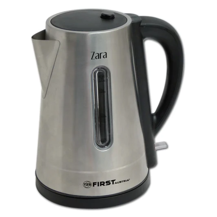 Корпус электрочайника First FA 5411-4 изготовлен из нержавеющей стали. Металл более устойчив к высоким температурам, чем пластик, и не выделяет в воду токсичные вещества. Кроме того, он крепче, и выглядит более технологично. В целом, данной модели характерен стильный и современный дизайн, который не только впишется в интерьер Вашей кухни, но и может стать важным элементом ее декора. Эргономичная ручка чайника сделана из термостойкого пластика черного цвета и удобно лежит в руке. Под ней расположена кнопка включения/выключения прибора.