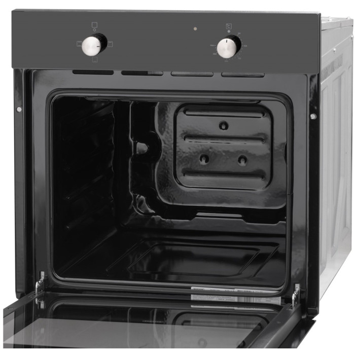 Догляд за духовою шафою простий завдяки антипригарній емалі чорного кольору і розбірним дверцятам, які легко мити як руками, так і в посудомийці.