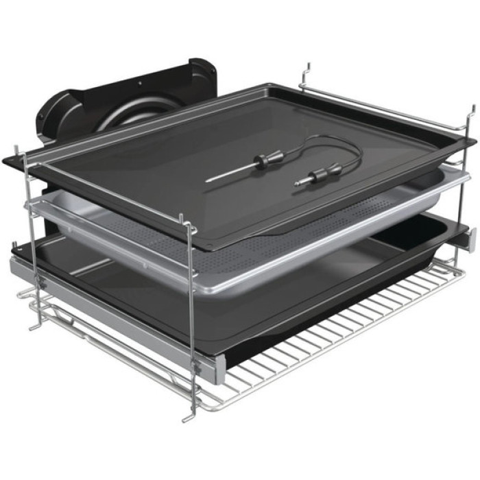 Система MultiFlow 360° обеспечивает оптимальную циркуляцию воздуха в духовке. Продуманное расположение отверстий на задней стенке и уникальная сводчатая форма помогают распределить потоки горячего воздуха по всему пространству рабочей камеры. Вентилятор доставляет горячий воздух в самые дальние уголки духовки, обеспечивая равномерное приготовление блюда. Циркуляция воздуха позволяет одновременно готовить на нескольких уровнях без смешивания вкусов и запахов.