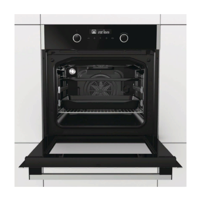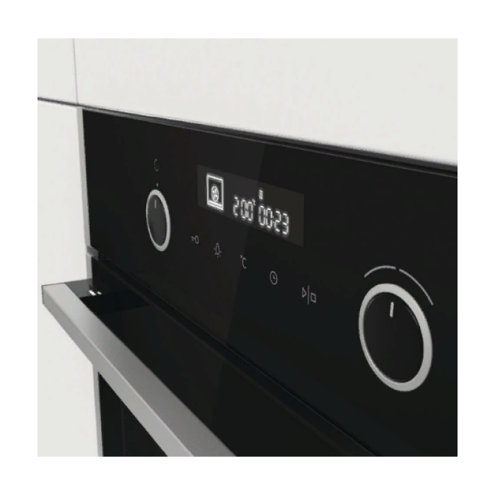 Благодаря использованию совершенно новой пиролитической эмали во всех линиях нового поколения духовок Gorenje эффективность функции AquaClean намного улучшена. Функция AquaClean — это ощутимая помощь в очистке рабочей камеры. Все, что требуется, — это налить 0,5 литра воды в противень и включить функцию AquaClean. Через 30 минут результаты видны на внутренних стенках духовки и противнях. Загрязнения и жир размягчаются, и их остается просто протереть.