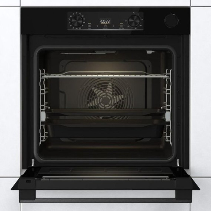 Поєднання продуманої системи циркуляції повітря, рівномірного розподілу простору між деками та спеціальною закругленою камерою забезпечує ідеальне випікання страв на будь-якому рівні. А великий розмір духової шафи ще й забезпечує чудовий огляд.