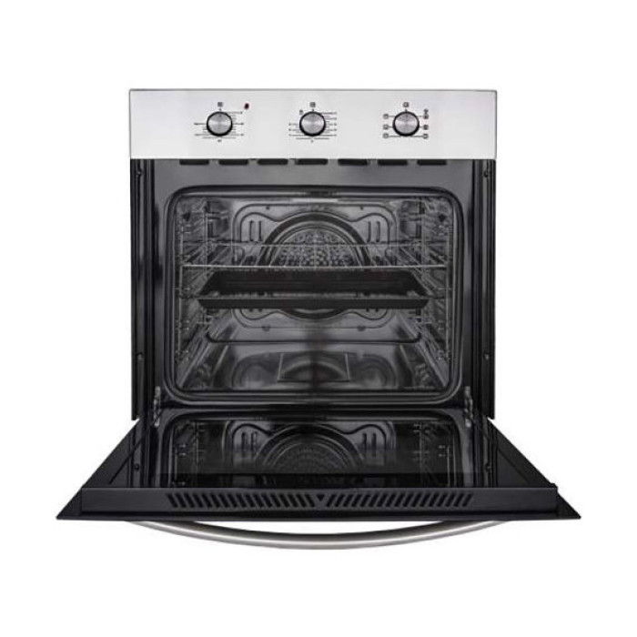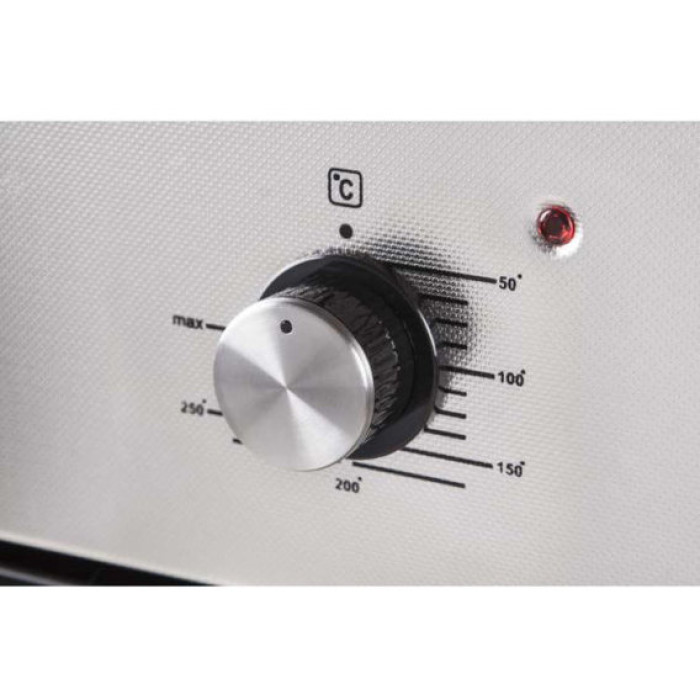 Духовка электрическая Ventolux CALGARY MLX встраиваемой независимой конструкции выполнена в современном дизайне из нержавеющей стали и закалённого стекла. Модель относится к классу энергопотребления А. Мощность подключения прибора 2000 Вт позволяет достигать максимальной температуры 250С. Объём устройства составляет 62 литра, а внутренняя камера покрыта высокопрочной термостойкой эмалью лёгкой очистки. Шесть режимов нагрева, включая гриль, и тангенциальная система вентиляции, обеспечивающая равномерное прогревание продуктов со всех сторон, предоставляют пользователю широкие возможности по приготовлению самых разных блюд. Входящие в комплектацию противень и решётка-гриль могут размещаться на 5 уровнях боковых хромированных направляющих. Используя механический программатор с автоматическим отключением, можно задавать время готовки еды. Электрическая духовка Ventolux CALGARY MLX управляется удобными механическими поворотными ручками.