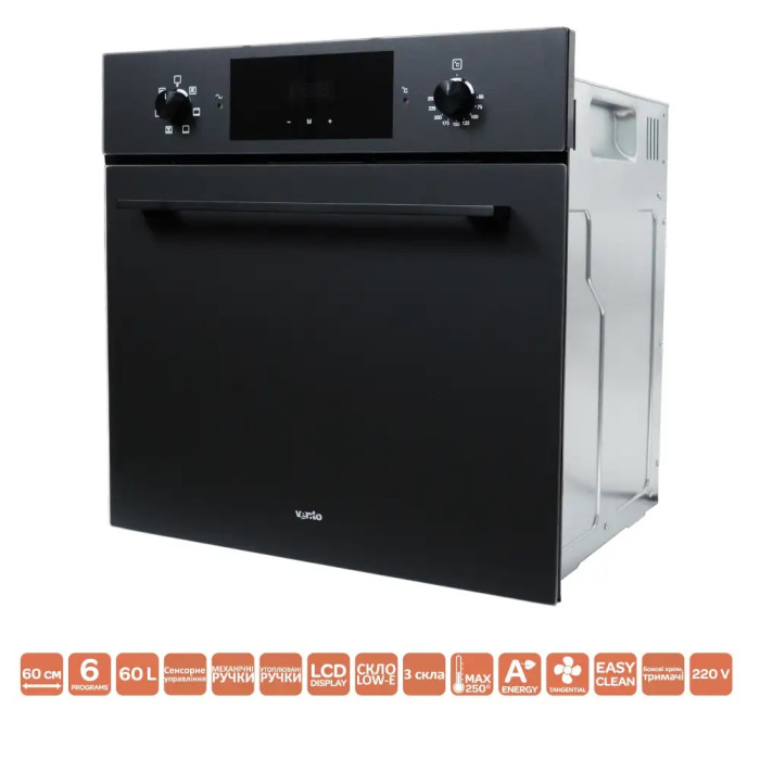 Духова шафа VENTOLUX EO60TC-6P MBG - це сучасний і функціональний кухонний прилад, створений для комфортного та ефективного готування страв. Ця модель обладнана шістьма різними режимами приготування, що дозволяє вам готувати широкий спектр страв з використанням різних технік.Шафа має об'ємність 60 літрів, що забезпечує достатньо місця для приготування більшого обсягу їжі. Крім того, вона оснащена функцією конвекції, яка дозволяє рівномірно розподіляти тепло в середині шафи і забезпечує швидке та якісне приготування.Духова шафа VENTOLUX EO60TC-6P MBG виготовлена з високоякісних матеріалів, що гарантує її довговічність і надійність. Крім того, її сучасний дизайн і чорне скло додають кухні стильний вигляд.Завдяки всім цим характеристикам, духова шафа VENTOLUX EO60TC-6P MBG стане незамінним помічником у вашій кухні, дозволяючи вам легко готувати різноманітні та смачні страви для всієї сім'ї.