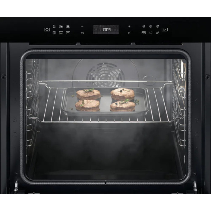 Технологія «6th Sense» дозволяє вибирати з безлічі заздалегідь запрограмованих налаштувань, дозволяючи вашій духовці автоматично регулювати параметри приготування, температури та часу для досягнення ідеальних результатів. Плавне закриття дверцят духовки для зручності використання. Технологія SteamSense: 3 рівні пари. Функція Cook4: одна духовка, 4 різні страви одночасно, без проникнення смаків та запахів. Функція Ready2Cook завдяки системі конвекційного нагріву дозволяє швидко досягти потрібної температури та повністю виключає необхідність попереднього розігріву духовки. М'яке закриття дверцят