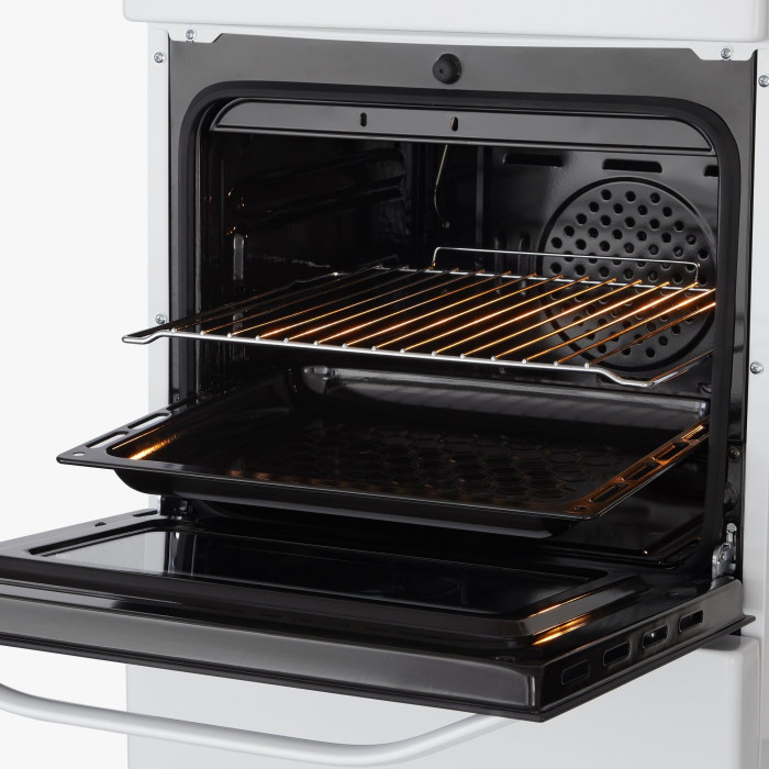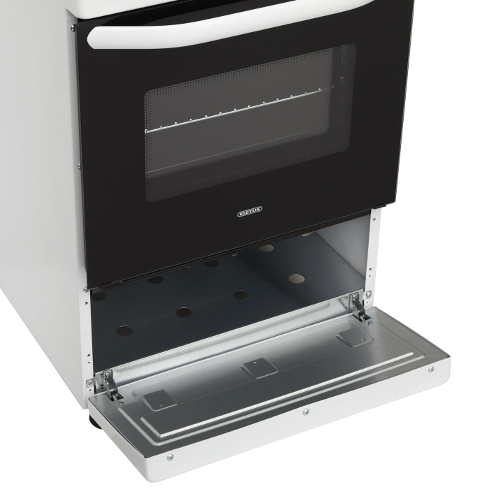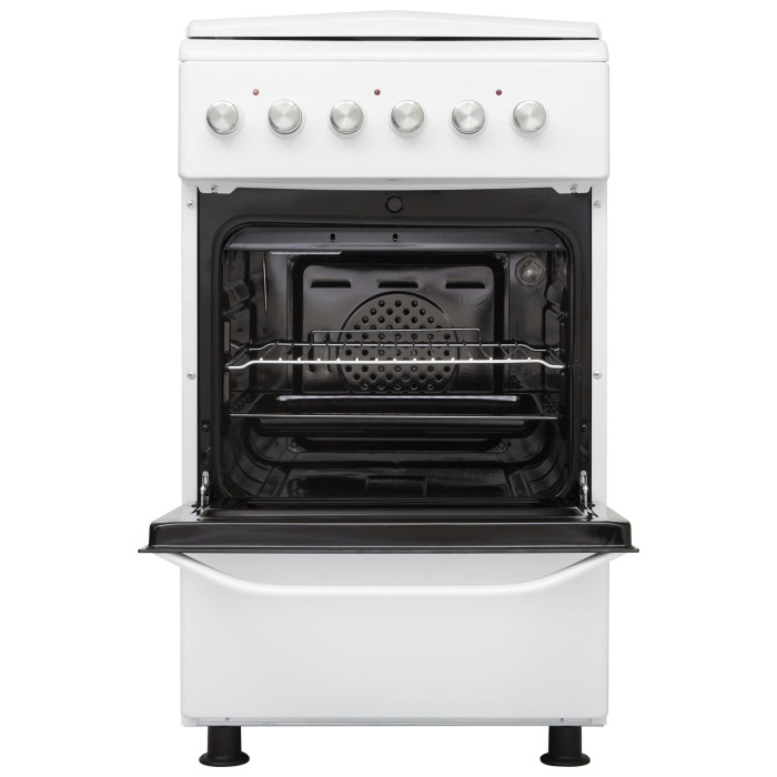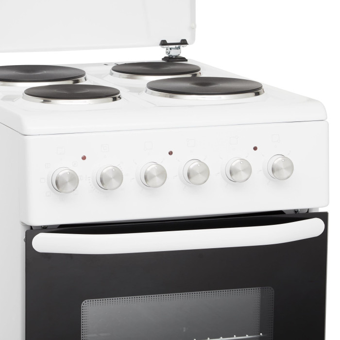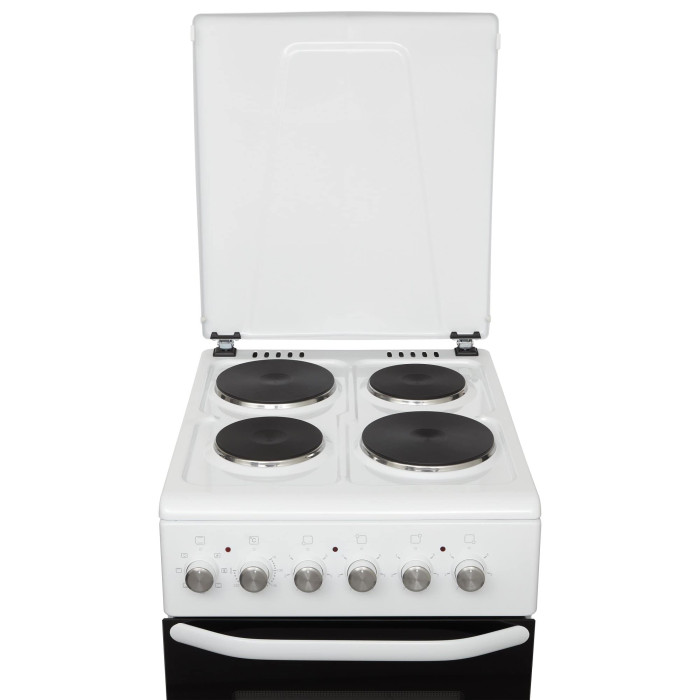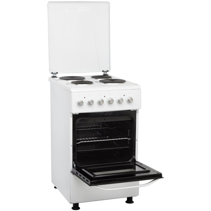 ELEYUS NEXT 5007 H4 – кухонная плита с электрической варочной поверхностью и электрическим духовым шкафом объемом 52 л. Металлическая крышка защищает стену от загрязнений при готовке, а регулируемые ножки позволяют изменить высоту плиты и надежно ее установить.