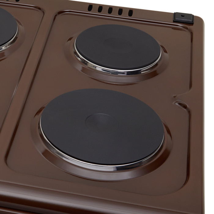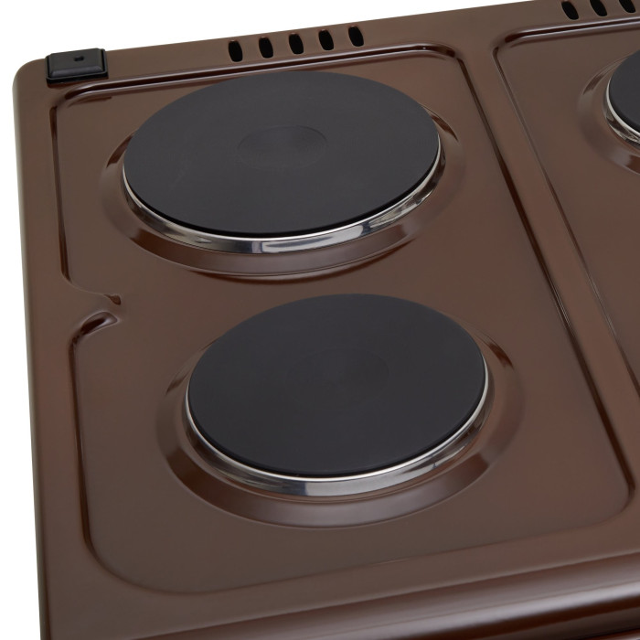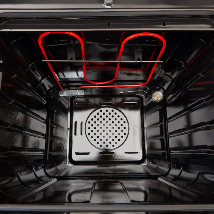 ELEYUS NEXT 6007 H4 – кухонная плита с электрической варочной поверхностью и электрическим духовым шкафом объемом 64 л. Имеет таймер с автовыключением, металлическую защитную крышку и регулируемые ножки, чтобы изменить высоту плиты и надежно ее установить.