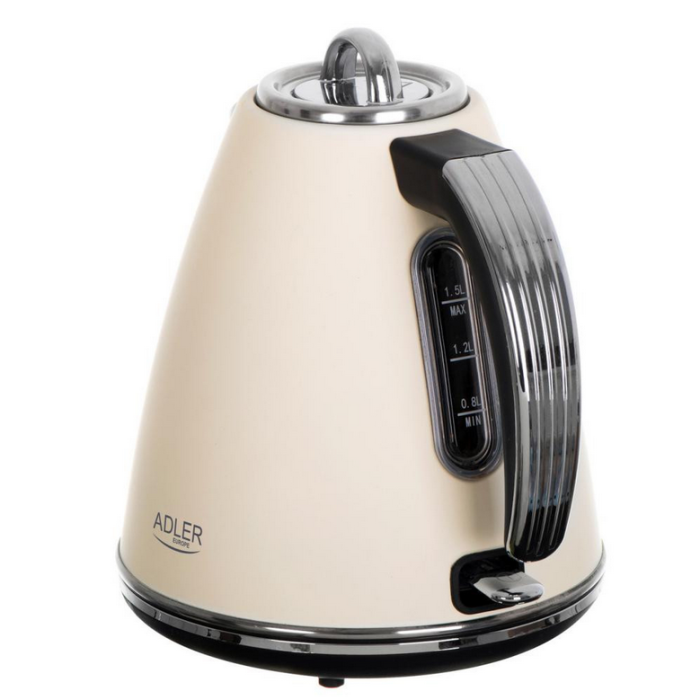 Adler AD 1343 - класичний 1,5-літровий електрочайник, який знадобиться на кожній кухні. З метою безпеки він оснащений автоматичним вимкненням, яке захищає чайник від перегріву та вимикає його одразу після закипання води. Функціональність збільшується завдяки стійкій основі та яскравому індикатору рівня води. Чайник виготовлений із нержавіючої сталі та оснащений потужним нагрівальним елементом потужністю 1850-2200 Вт, що робить його майстром швидкого кип'ятіння води.