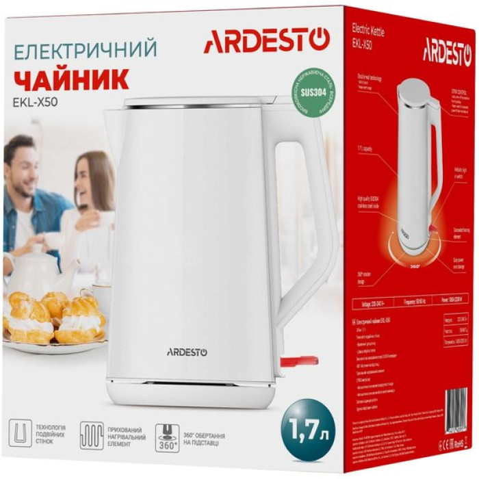 Елегантний електрочайник ARDESTO EKL-X50 має об'єм 1.7 л, оптимальний для сім'ї із 4 осіб. Корпус мінімалістського дизайну із подвійними стінками. Оснащений прихованим нагрівальним елементом, що гарантує тривалий термін служби. При потужності 1850-2200 Вт можна закип'ятити воду в чайнику за кілька хвилин.