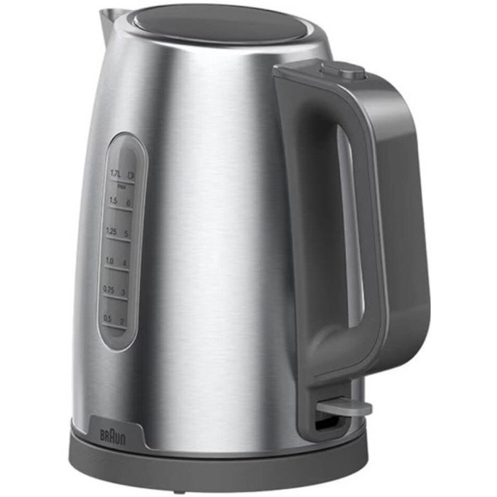 Електрочайник BRAUN WK1500GY - це надійний та зручний прилад для швидкого кип'ятіння води. Компактний та ергономічний дизайн робить його зручним у використанні, а стильне сіре оформлення легко вписується у будь-який кухонний інтер'єр. Чайник швидко закип'ятить воду для чаю, кави або інших гарячих напоїв, поєднуючи функціональність, якість і сучасний зовнішній вигляд. Модель Braun WK1500GY стане практичним помічником на кожен день.