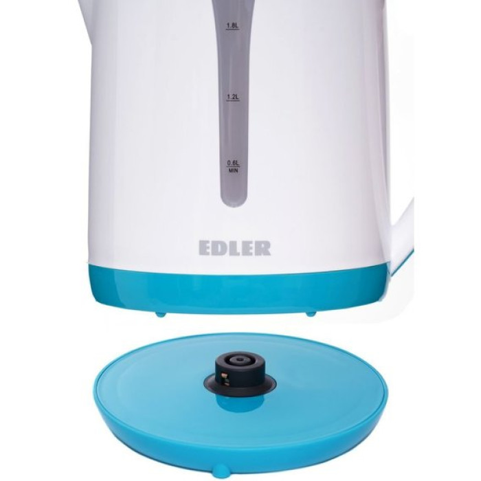 Edler EK4520 не принесе клопоту як у процесі експлуатації, так і при обслуговуванні завдяки продуманим деталям. Привабливим він буде для споживача та зовні, завдяки корпусу із пластику та сучасному дизайну. Не можна не відзначити, що потужність такого чайника становить 2200 Вт, а за його стабільну роботу відповідає прихований дисковий нагрівальний елемент.