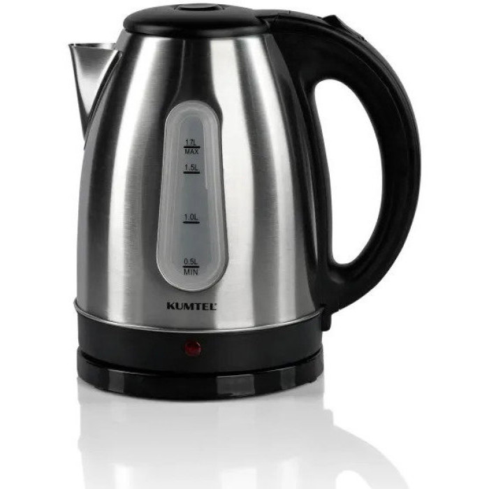KUMTEL HMK-05 Inox - электрический чайник в универсальном дизайне, который отлично смотрится в любом кухонном интерьере. Стальной корпус надежно защищает все детали чайника от повреждений. Он не нуждается в особом уходе и имеет отличные эксплуатационные качества. Мощность 2200 Вт, которой вполне достаточно для эффективного нагрева воды, при этом аппарат отличается высокой экономичностью. Он вмещает в себе 1,7л. воды, благодаря чему отлично подходит как маленькой, так и большой семье. Оснащен функцией автоматического отключения при закипании воды, скрытый нагревательный элемент из нержавеющей стали, индикатор уровня воды, кабельный отсек, функция ручного открывания крышки, поворот на подставке на 360°.