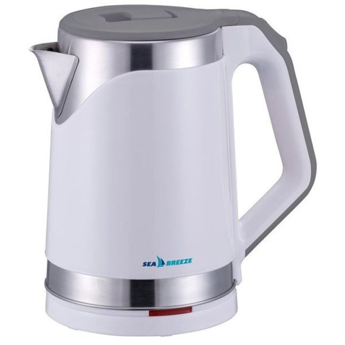Електрочайник Sea Breeze SB-011 зроблений у дусі сучасних аскетичних моделей, які не мають нічого зайвого в елементах користувача, органічно вписуються в інтер'єрні рішення, а також демонструють чудовий робочий потенціал протягом багатьох років. Особливістю моделі став двошаровий корпус: внутрішній суцільнометалевий резервуар і зовнішні стінки із пластику, що забезпечують адіабатичний процес. Між ними зберігається прошарок з повітря, за рахунок чого реалізується ефект термоса: усередині зберігається тепло, а зовнішня частина конструкції залишається прохолодною. Для комфортної роботи з електричним чайником резервуар зроблений бездротовим. Мережевий кабель підведено до підставки, яка є елементом контакту зі струмом. При цьому сам глечик позбавлений проводів, що ускладнюють експлуатацію, і його можна обертати навколо власної осі на 360°.