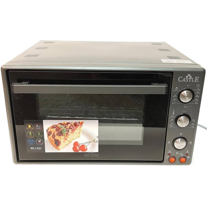 Для керування Castle CPE-40 використовує класичні поворотні перемикачі, є внутрішнє підсвічування для контролю за процесом приготування та програмований таймер (до 90 хвилин), який після закінчення часу подасть звуковий сигнал і вимкне нагрівання. А для безпечнішого використання електродуховка оснащена подвійним термосклом на дверцятах і системою автоматичного відключення приладу.