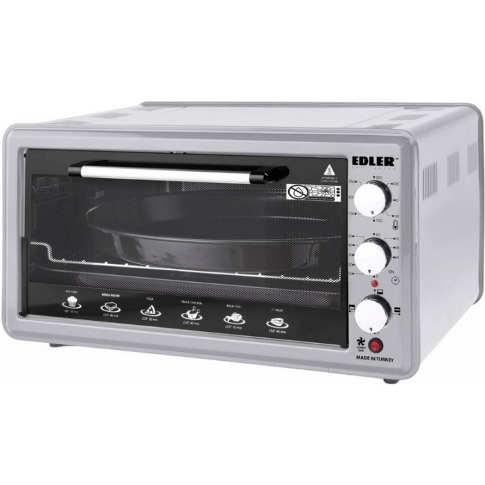 Edler EO-2003 – электропечь производства компании Edler, техника которой отличается качеством премиального класса. Устройство выполнено в стильном черном цвете, из материалов используются нержавеющая сталь и двойное закаленное стекло для дверцы духовки. Устройство рассчитано на объем до 45 литров. Объем внутренней части увеличен за счет инновационной формы, что создает оптимальную циркуляцию воздуха. Термостат рассчитан на 320 ⁰С.