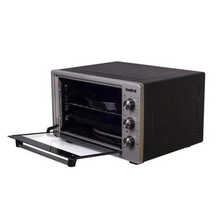 GoodGrill – отдельная электрическая печь с механическим управлением и общим объемом 50 литров. Модель имеет шикарный и стильный вид, но при этом достаточно проста в использовании и подойдет даже начинающим хозяйкам. Эта электропечь позволит просто и быстро приготовить разные блюда. Максимальная температура духового шкафа составляет 300 градусов. Во время приготовления можно регулировать время, температуру, режимы нагрева. Режим конвекции придаст профессионализму Вашим блюдам. Наличие таймера позволит не следить за временем приготовления пищи, а заниматься своими делами. Блюда приготовятся вовремя, и духовка отключится после заданного времени.