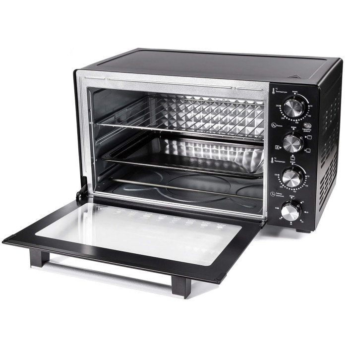 Світловий індикатор роботи. Звуковий сигнал. Довжина шнура: 1 м. Комплектація: електрична піч, дека з антипргарним покриттям, грати гриль, ручка знімна для дека та решітки