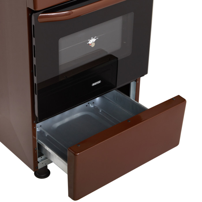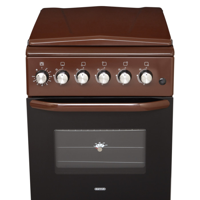 ELEYUS CAST 5001 – кухонная плита с газовой варочной поверхностью и газовым духовым шкафом объемом 50 л. Металлическая крышка защищает стену от загрязнений при готовке, а регулируемые ножки позволяют изменить высоту плиты и надежно ее установить.
