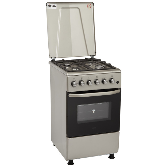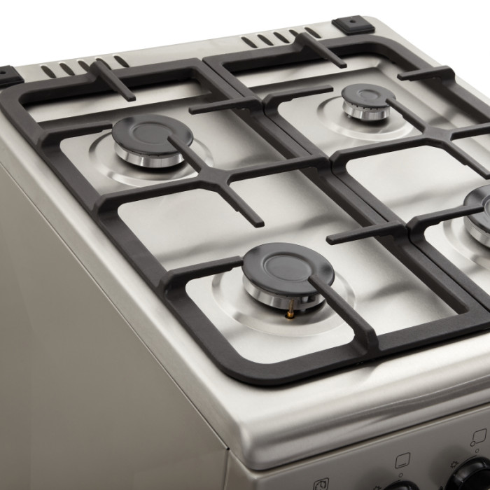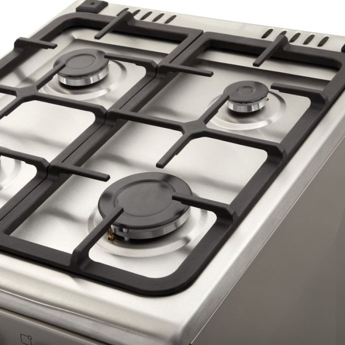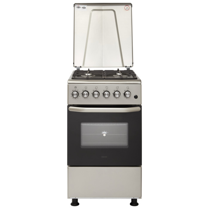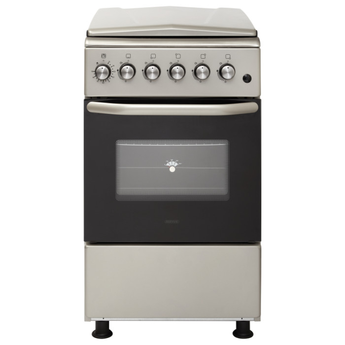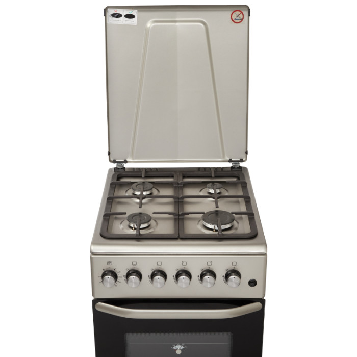 ELEYUS CAST 5001 – кухонная плита с газовой варочной поверхностью и газовым духовым шкафом объемом 50 л. Металлическая крышка защищает стену от загрязнений при готовке, а регулируемые ножки позволяют изменить высоту плиты и надежно ее установить.