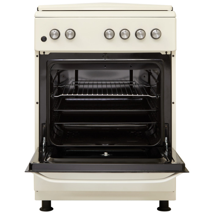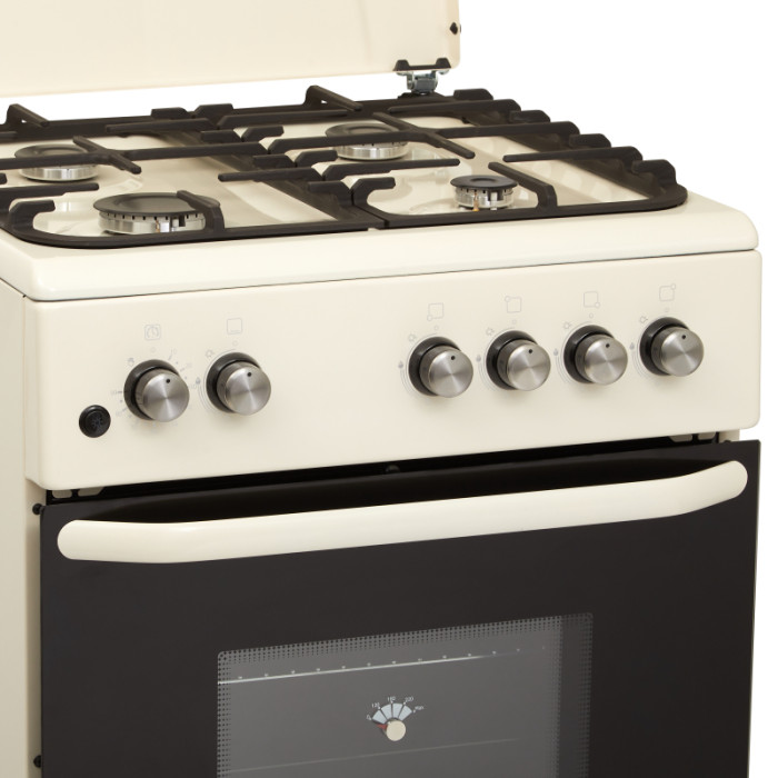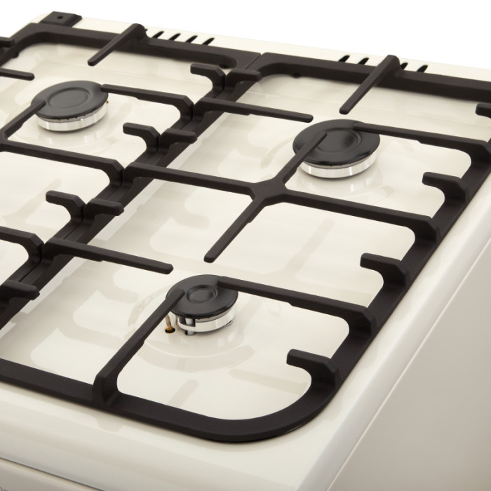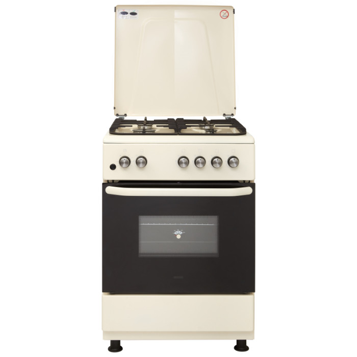 ELEYUS CAST 6001 – кухонная плита с газовой варочной поверхностью и газовым духовым шкафом объемом 64 л. Металлическая крышка защищает стену от загрязнений при готовке, а регулируемые ножки позволяют изменить высоту плиты и надежно ее установить.
