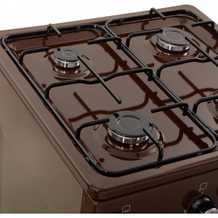 ELEYUS CUBA 5501 – кухонная плита с газовой варочной поверхностью и газовым духовым шкафом объемом 50л. Размеры кухонной плиты – 50×50 см. Не пугается никаких неровных поверхностей, ведь выравнивается с помощью регулируемых ножек.