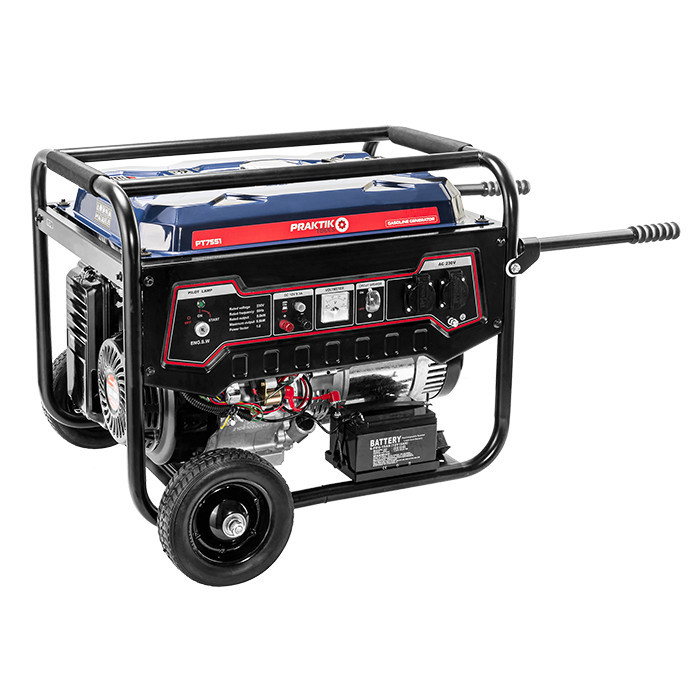 Агрегат 5,5 кВт Praktik PT7551 Выходное напряжение можно контролировать по индикатору напряжения. Топливный бак обеспечивает очень большую автономность в работе и имеет индикатор количества топлива. На щите управления расположены две розетки с напряжением 230В, что позволяет одновременно использовать двух потребителей. Он также имеет розетку выходного напряжения 12 В. Этот агрегат имеет электронный стартер, обеспечивающий легкий запуск, т.е. зажигание. Дополнительные колеса облегчают перемещение или транспортировку. PT7551 АГРЕГАТ - ЭЛЕКТРИЧЕСКАЯ МОЩНОСТЬ ПУСК - 13 л.с. РАБОЧАЯ ВЫХОДНАЯ МОЩНОСТЬ - 5,0 кВт МАКС. ВЫХОДНАЯ МОЩНОСТЬ - 5,5 кВт ПОСТОЯННАЯ РАБОТА - 10 ч ВЕС: 82 кг