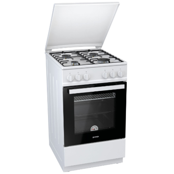 GORENJE G5111WH-B - газовая панель + газовый духовой шкаф, газ-контроль конфорок, поверхность: эмалированная сталь, крышка из эмалированной стали, энергопотребление A, управление механическое, без таймера, размеры (ШхГхВ): 50x59.4x85 см, цвет белый
