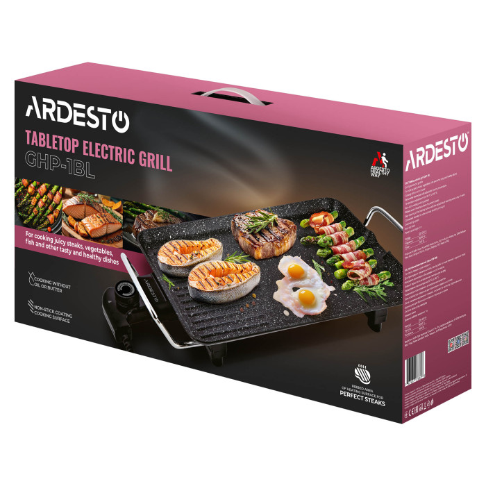 Настольный электрический гриль ARDESTO GHP-1BL превратит любую кухню в настоящую зону барбекю. Благодаря мощности 1500 Вт и возможности регулировки температуры от 60 °C до 240 °C можно легко приготовить сочные стейки, овощи или рыбу без масла. Антипригарная поверхность с ребристой зоной обеспечит аппетитную корочку, а съемный термостат позволяет точно контролировать уровень нагрева. Гриль легко чистить, в частности, нагревательную поверхность можно мыть под проточной водой. Гарантией безопасности устройства является система защиты от перегрева, а также конструкцией предусмотрены удобные ручки для переноски и нескользящие ножки для надежной фиксации на поверхности.