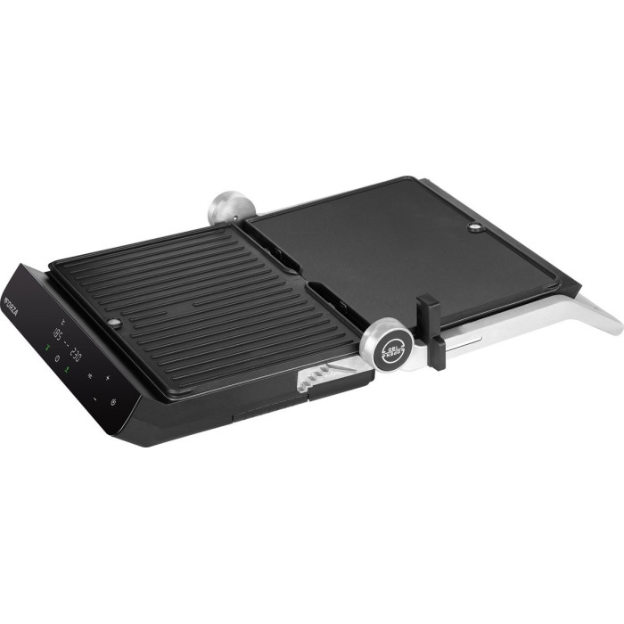 Основные преимущества устройства – отдельные термостаты для верхней и нижней пластин, которые позволяют точно регулировать температуру в диапазоне от 80 до 230°C. Благодаря этому можно готовить разные продукты, требующие индивидуальных условий нагрева.